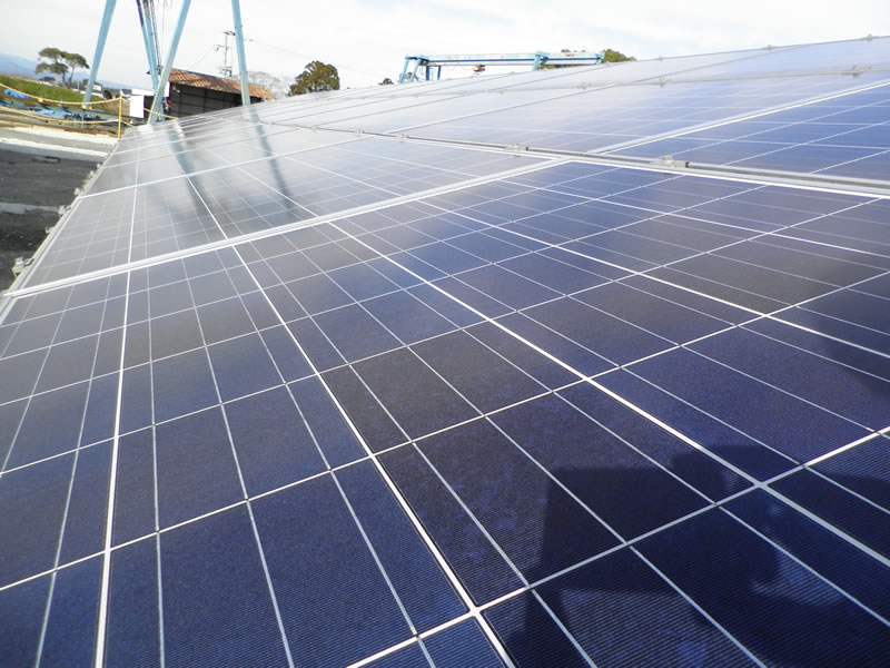 自社で温室効果ガス排出量を少しでも抑制できればと思い、社会への貢献として加工場内にソーラーパネルを設置し、太陽光発電に取り組んでおります。